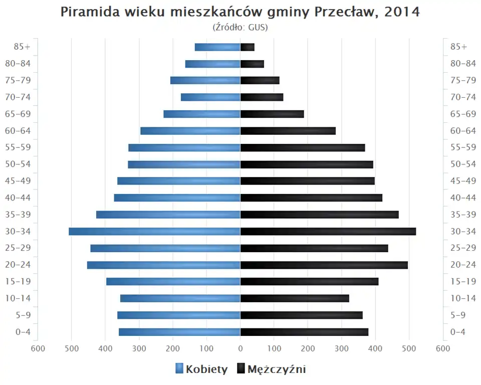 - Piramida wieku mieszkańców gminy Przecław w 2014 roku[1].