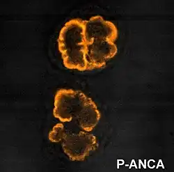DJ. Davies, JE. Moran, JF. Niall, GB. Ryan. Segmental necrotising glomerulonephritis with antineutrophil antibody: possible arbovirus aetiology?. „Br Med J (Clin Res Ed)”. 285 (6342), s. 606, 1982. DOI: 10.1136/bmj.285.6342.606. PMID: 6297657. PMCID: PMC1499415. - ↑ FJ. van der Woude, N. Rasmussen, S. Lobatto, A. Wiik i inni. Autoantibodies against neutrophils and monocytes: tool for diagnosis and marker of disease activity in Wegener's granulomatosis. „Lancet”. 1 (8426), s. 425-429, 1985. DOI: 10.1016/S0140-6736(85)91147-X. PMID: 2857806.