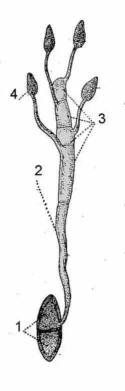 - 2 – strzępka przedgrzybni