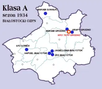 - ↑ Do 1926 roku jako Hasmonea Grodno. Pełna nazwa: Żydowski Klub Sportowy Makabi Grodno.
