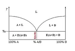 Powyższy podział determinowany jest przez regułę Hume’ego-Rothery’ego. W pierwszym przypadku ciecz rozpada się na mieszaninę złożoną z czystych składników. W drugim przypadku z cieczy wydzielają się podczas chłodzenia roztwory stałe[1]. Należy pamiętać o tym, że krzepnięcie nie może się obywać dokładnie w temperaturze eutektycznej TE. Z termodynamicznego punktu widzenia wiązałoby się to z utworzeniem eutektyki o nieskończenie dużych odległościach międzypłytkowych. Dodatkowo kryształy faz stałych α i β mogą w tej temperaturze współistnieć w równowadze jedynie z cieczą o składzie eutektycznym (pozbawionej gradientów koncentracji)[3]. W układzie podwójnym przez α będziemy rozumieć roztwór składnika B w A, a przez β roztwór składnika A w B[1].