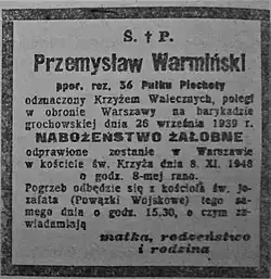 - ↑ R. Sierchuła, Przemysław Warmiński (1908-1939), [w:] Słownik biograficzny polskiego obozu narodowego, t. 5, red. K. Kawęcki, , Warszawa 2023, s. 402.
