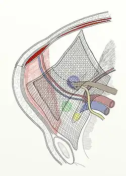 - ↑ A. Ścierski: Algorytmy postępowania. W: Przepukliny pachwinowe i udowe u dorosłych. Wyd. 1. Bielsko Biała: Alfa-Medica, 2011, s. 188–191. ISBN 978-83-7522-051-3.