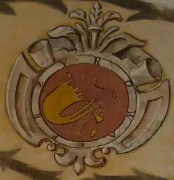 W klejnocie nad hełmem w koronie trzy pióra strusie. W wersji pierwotnej, w klejnocie było pojedyncze skrzydło orle.