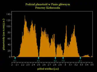 Przerwy Kirkwooda – brak występowania planetoid na pewnych orbitach w pasie planetoid (o pewnych wielkościach półosi wielkiej lub odpowiadających im okresach orbitalnych). Odpowiadają one położeniu rezonansów orbitalnych z Jowiszem.