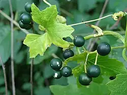 - Czarne jagody o wielkości podobnej do nasion grochu.
