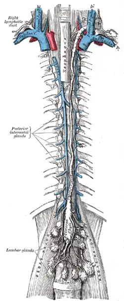 Te trzy naczynia tworzą po prawej stronie ciała krótki przewód chłonny prawy, a po lewej uchodzą do przewodu piersiowego. Przewód piersiowy i prawy przewód chłonny uchodzą odpowiednio do lewego i prawego kąta żylnego, utworzonego przez połączenie żyły szyjnej wewnętrznej i żyły podobojczykowej w żyłę ramienno-głowową.