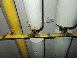 - Przewody wyrównawcze główne powinny być umiejscowione w najniższej kondygnacji budynku. Przekrój poprzeczny nie powinien być mniejszy od połowy przekroju przewodów zastosowanych do zasilania budynku, jednak nie mniej niż 6 mm2. Jeżeli jest on wykonany ze stali, jego przekrój nie powinien być mniejszy niż 25 mm2[3]. Przewody wyrównawcze główne łączą szynę główną wyrównawczą z przewodem ochronnym zasilania budynku w rozdzielni głównej, z częściami przewodzącymi dostępnymi urządzeń, z częściami przewodzącymi obcymi (np. rury instalacji wodnej, kanalizacyjnej i gazowej, oraz metalowe elementy konstrukcji budynku).