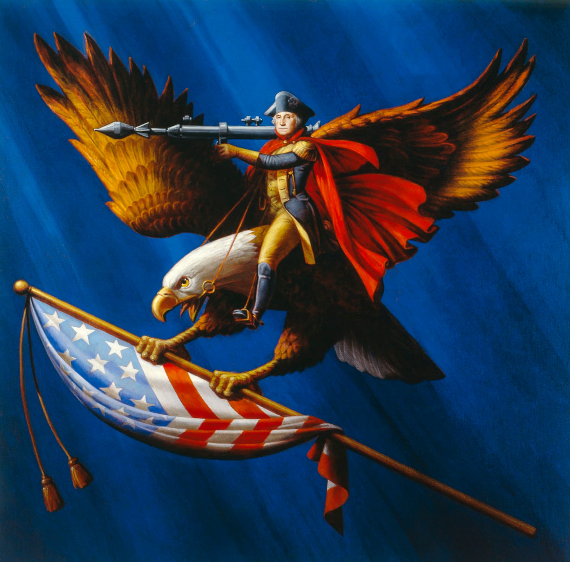 Obraz namalowany techniką olejną na płótnie[6]. Prezydent George Washington został przedstawiony z bazooką opartą na ramieniu[1]. Dosiada bielika amerykańskiego w locie[7], symbolu Stanów Zjednoczonych obecnego na Wielkiej Pieczęci Stanów Zjednoczonych[1]. Orzeł trzyma amerykańską flagę[1]. Obraz można odczytywać jako wyzwanie wobec marzeń związanych z kapitalizmem[1], a także jako ilustrację znaczenia Stanów Zjednoczonych i ich wpływu[8].