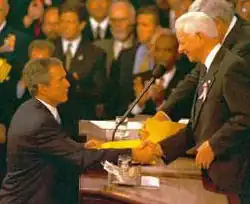 Zgodnie z literą konstytucji „stałym” przewodniczącym Senatu jest wiceprezydent Stanów Zjednoczonych. Jednakże nie jest on członkiem tej izby (czyli jednym z senatorów). W związku z tym nie przysługuje mu prawo głosu, poza rzadkimi, aczkolwiek mającymi czasem miejsce, sytuacjami, kiedy podział głosów jest równy. Wtedy to wiceprezydent oddaje decydujący (tie-break vote).