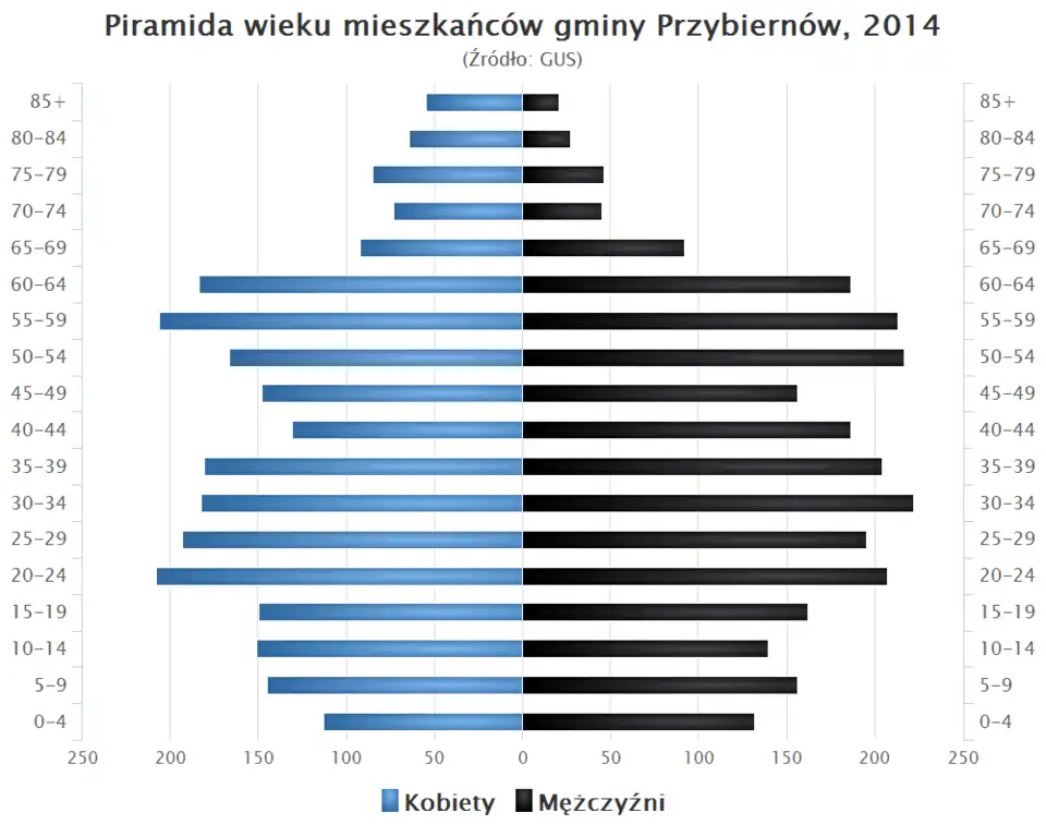 - Piramida wieku mieszkańców gminy Przybiernów w 2014 roku[2].