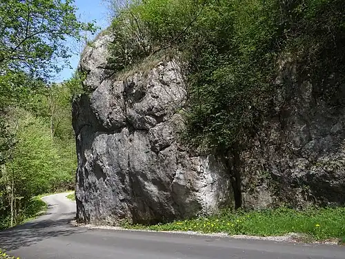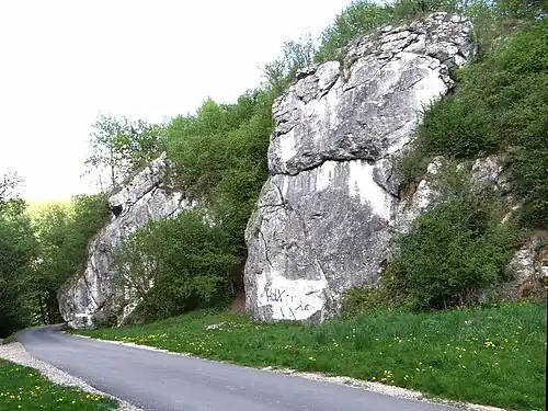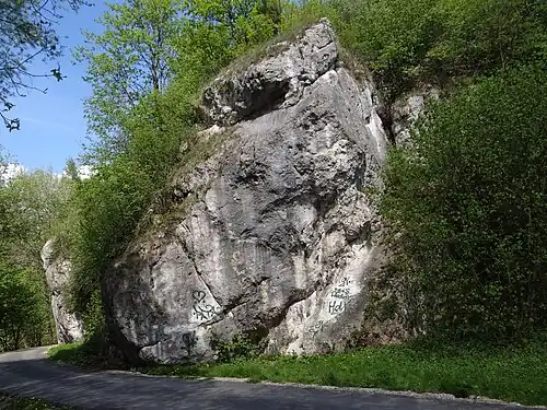 - Przydrożna Skała 2. Wysokość 5–10 m, ściany połogie, pionowe lub przewieszone o wystawie południowej i południowo-zachodniej. 4 drogi wspinaczkowych o trudności IV – VI.4+[2].