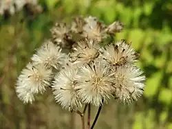 - Niełupki z puchem kielichowym. U kwiatów w zewnętrznym szeregu włoski puchu kielichowego wyrastają w jednym szeregu, u kwiatów z wewnętrznego szeregu w dwóch szeregach, przy czym włoski szeregu wewnętrznego są dużo dłuższe od włosków szeregu zewnętrznego[6].