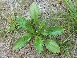 - Dolne są odwrotnie jajowate, lub eliptyczne, gruboząbkowane, o nasadzie klinowato zbiegającej w długi ogonek. Liście górne szeroko lancetowate lub lancetowate, z nielicznymi, grubymi ząbkami lub prawie całobrzegie[6][7].