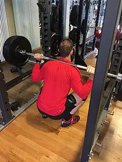 Przysiady ze sztangą wraz z wyciskaniem leżąc oraz martwym ciągiem wchodzą w skład trójboju siłowego[2].