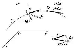 Jeżeli dany wektor określa położenie punktu materialnego, a wektor określa prędkość tego punktu, to jego przyspieszenie jest pochodną prędkości po czasie: