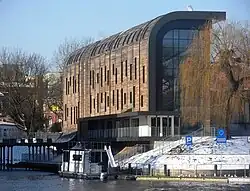 Budynek nawiązuje do motywu wodno-portowego, harmonizującego ten zakątek Wyspy Młyńskiej. Z jednej strony budynek odzwierciedla falę wdzierającą się na ląd. Z drugiej symbolizuje łupinę jachtu unoszącego się na wodzie.