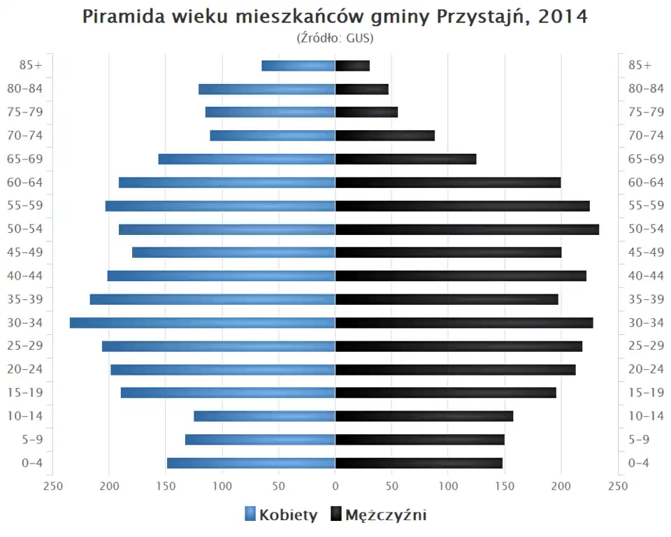 - Piramida wieku mieszkańców gminy Przystajń w 2014 roku[1].