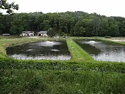 Stawy hodowlane zasilane są wodą z rzeki Wiercica, która wypływa w Źródle Zygmunta i Elżbiety zaledwie 300 m dalej na zachód. Jest bardzo czysta (klasa czystości A1), zimna i dobrze natleniona[2], dzięki czemu możliwa jest w niej hodowla pstrągów. Stawy hodowlane w tym miejscu zostały założone przez Edwarda Aleksandra Raczyńskiego w 1881 roku i wówczas była to największa pstrągarnia na kontynentalnej Europie. Miała 22 stawy o łącznej powierzchni 13,2 hektara i głębokości do 4 m oraz budynek wylęgarni. W 1881 roku z Kalifornii sprowadzono ikrę pstrąga tęczowego. Zapłodnienie ikry odbyło się uroczyście, w obecności zaproszonych gości. Oprócz pstrągów tęczowych w stawach hodowano także pstrągi źródlane, pstrągi potokowy, łososie szlachetne, węgorze i sandacze. Na początku XX wieku stawów było już 46, a gospodarstwo zajmowało się również hodowlą ikry pstrągów, która eksportowana była do wielu krajów europejskich[3]. Gospodarstwo rybne działa do dzisiaj. Jest przy nim parking i restauracja, w której serwowane są ryby z własnej hodowli[3]. Do gospodarstwa prowadzi ścieżka dydaktyczna „Złota kraina pstrąga”[4].
