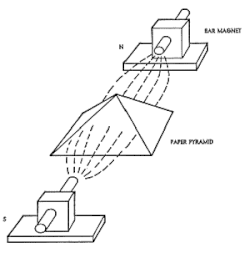 - ↑ M.A. Bovis, METHODE NIÇOISE DE RADIESTHÉSIE BASEE SUR L’INDUCTION DE TOUS LES CORPS, Skeptic » Junior Skeptic » excerpt from Exposé de M.A. Bovis au Congrès International de Radiotellerie à Nice (red.) [online], www.skeptic.com [dostęp 2025-02-23], Cytat: Mummification by Pyramid I have measured exactly with a Biomètre the radiations of the 4 sides and I have found positive 215° at the North, negative 215° at the South, dual-positive 240° at the East, and at the West negative 75° only (notice that this negative 75° reading at the west of the pyramid corresponds to the most harmful waves that we know of). Then I measured the radiations inside the monument at around a third of its height ... (fr.).