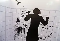 Rolę konsultanta wizualnego pełnił Saul Bass[127]. Przygotowując się do realizacji sceny pod prysznicem, reżyser, za dopłatą 2 tys. dolarów poprosił grafika o przygotowanie scenorysu[128]. Do zdjęć sekwencji Hurley i Clatworthy wybudowali oddzielną konstrukcję o czterech ścianach. Każda z nich była ruchoma, aby umożliwić Hitchcockowi dowolne ustawienie kamery. Reżyser nalegał na „oślepiająco białe kafelki” i błyszczącą armaturę, nawiązując tym samym do swoich poprzednich produkcji – Morderstwa (1930) i Urzeczonej (1945)[129]. Omawiając tę scenę z Leigh, przedstawił aktorce scenorys Bassa, zakładający dokładnie rozpisane kąty ustawienia kamery[130]. Mając na uwadze granice wyznaczone przez cenzurę, kostiumolożka Rita Riggs przygotowała dla Leigh cielisty elastik, zakrywający intymne miejsca[r][134]. Na potrzeby sekwencji Bass stworzył zbliżenia ukazujące zakrwawione dłonie ofiary sięgające do przeciętej szyi, zaaprobowane przez Hitchcocka. Próbny materiał nakręcono 10 grudnia[135]. Po rozpisaniu rysunków przez reżysera okazało się, że do realizacji ujęcia potrzeba będzie siedemdziesięciu ośmiu ustawień kamery i skonstruowania specjalnego rusztowania[136]. Hitchcock chciał wykorzystać krew w scenie, którą imitował syrop czekoladowy[130]. Jego sprowadzeniem zajęli się charakteryzatorzy Jack Barron i Robert Dawn[137]. Zdjęcia rozpoczęły się 18 grudnia i kontynuowane były od 23 do 28 grudnia na Scenie A-18, wzbudzając zainteresowanie pracowników wytwórni[s][140]. Według Riggs sekwencję nagrywano klatka po klatce w oparciu o scenorys[138]. Realizacja 45-sekundowej sceny zajęła ekipie siedem dni[132][141], choć zapiski z planu informowały o jedenastu[142]. Chcąc sfilmować sekwencję w jednym ciągłym ujęciu Hitchcock korzystał z wózka kamerowego[143]. Odgłosy wbijającego się w ciało noża uzyskano poprzez dźganie melona kasaba[8][144]. Perkins nie brał udziału w nagrywaniu sekwencji pod prysznicem (w owym czasie przygotowywał się do występu na Broadwayu). Zastąpił go dubler[145].
