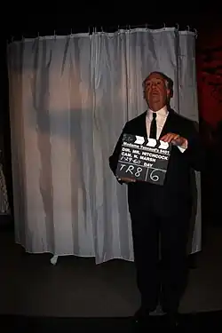 - Alfred Hitchcock – mężczyzna w kowbojskim kapeluszu przed biurem pośrednika nieruchomości (cameo)[18]