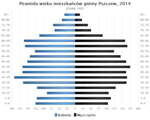 - Piramida wieku mieszkańców gminy Pszczew w 2014 roku[1].