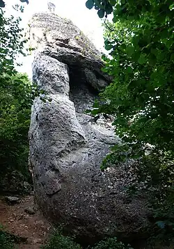 Pomiędzy skałami Ptak i Jędza znajduje się jaskinia o nazwie Awen między Babą a Ptakiem[5].
