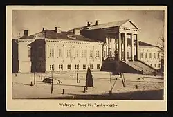 - ↑ Pałac Tyszkiewiczów został kupiony przez KOP, a w 1927 odrestaurowany i przystosowany na potrzeby wojska według planów Tadeusza Nowakowskiego.
