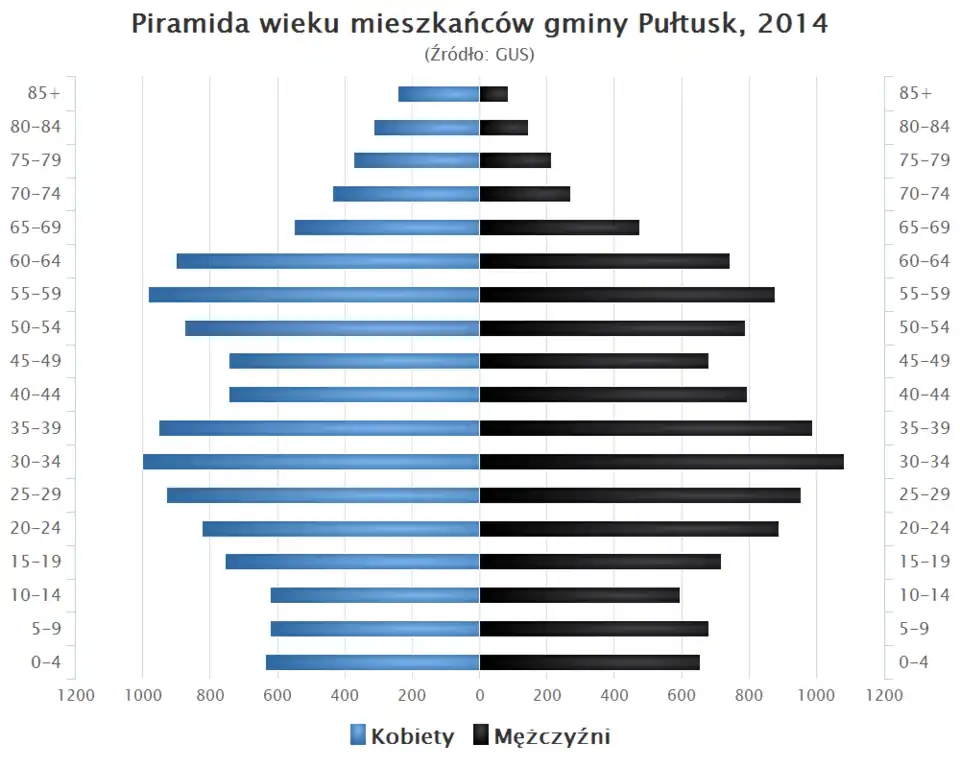 - Piramida wieku mieszkańców gminy Pułtusk w 2014 roku[5].