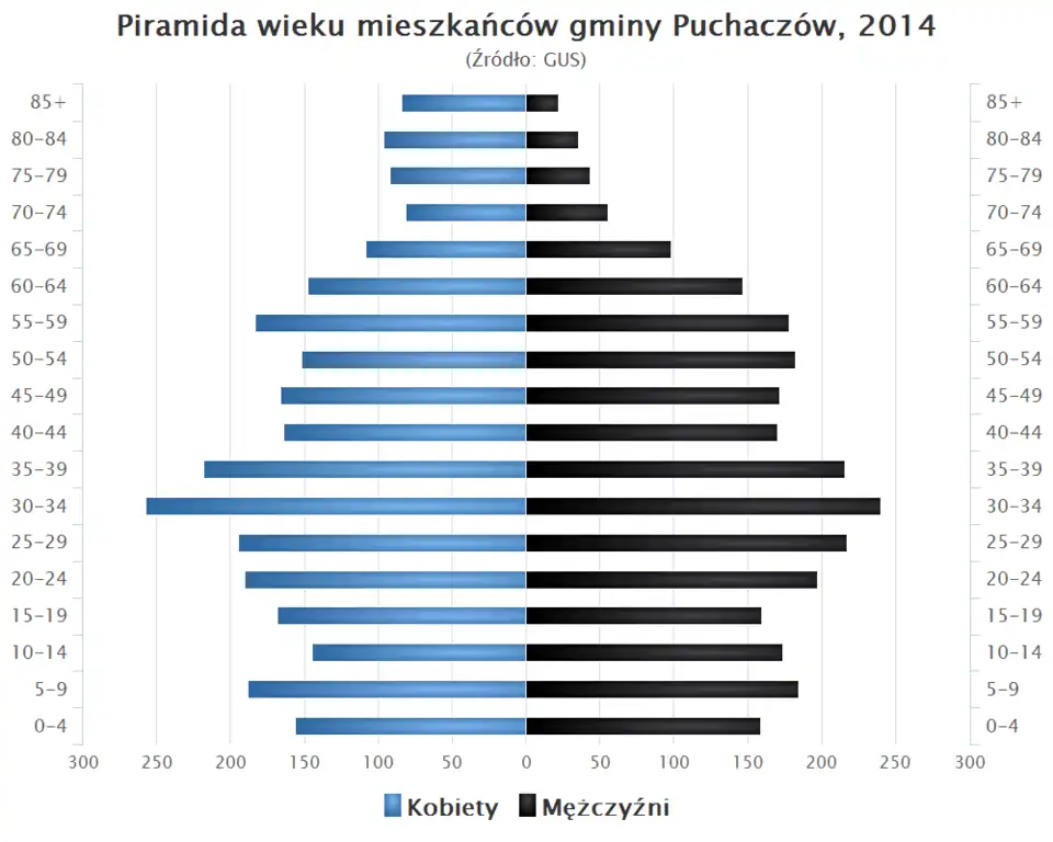 - Piramida wieku mieszkańców gminy Puchaczów w 2014 roku[1].