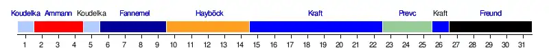 | Roman Koudelka | 1 | 10 | 6 | 11 | 1 | – | – | 2 | 1 | 7 | 11 | 10 | 13 | 10 | 12 | 8 | 3 | 1 | 6 | 3 | 5 | 3 | – | – | 14 | 38 | 7 | 37 | 9 | 29 | 24 |