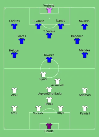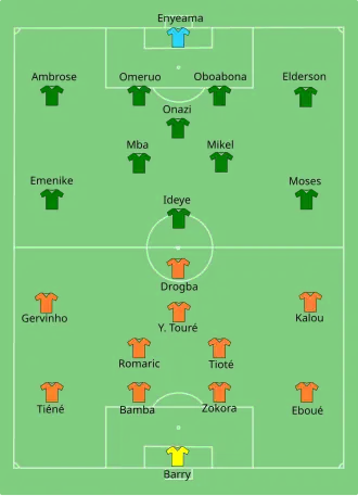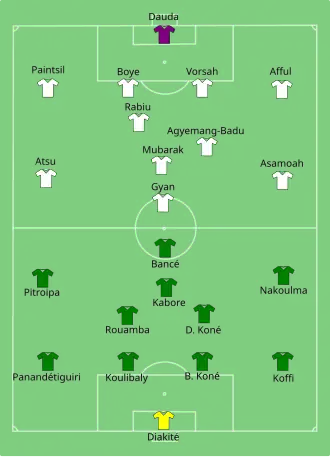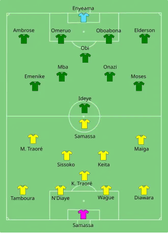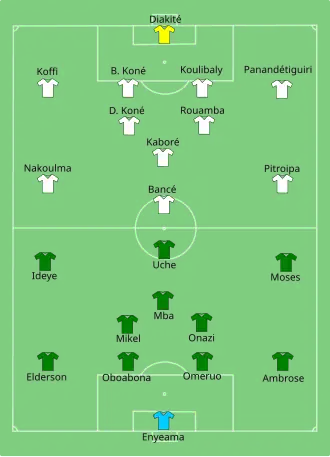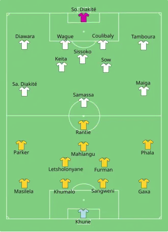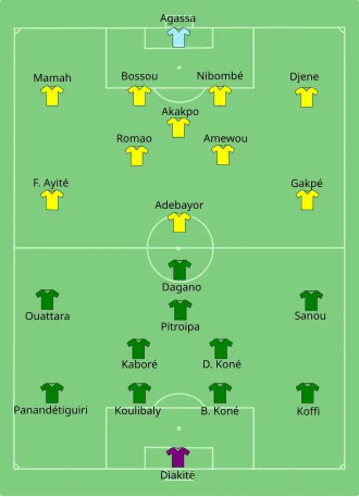 - ↑ Czerwona kartka została anulowana przez konfederację CAF, a sędzia meczu zawieszony.