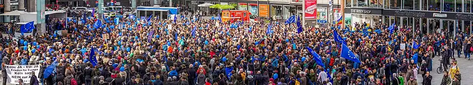 - ↑ Kate Connolly, Philip Oltermann, Sunday of protest in 40 cities to show growth of pro-EU movement [online], 12 marca 2017 [dostęp 2017-03-12].