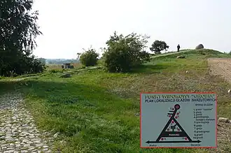 - ↑ Zarząd Województwa Wielkopolskiego: Strategia rozwoju turystyki w województwie wielkopolskim. 2007. s. 18. [dostęp 2010-04-24]. Cytat: "najwyższy punkt widokowy i wysokościowy regionu: Kobyla Góra koło Ostrzeszowa(284 m n.p.m.)- najlepiej zagospodarowany turystycznie punkt widokowy w województwie, z 20 metrowym Krzyżem symbolizującym 20 wieków chrześcijaństwa i pontyfikat Jana Pawła II, oraz Wał Wydartowski − z wieża widokowa w Dusznie, Chodzież, Łężeczki, Grobia, Bałczyna,"