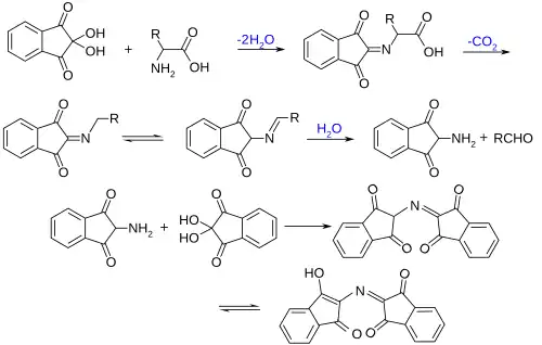 - ↑ Donald C. Wigfield, Gerald W. Buchanan, Stephen M. Croteau. On Ruhemann's Purple. „Can. J. Chem.”. 58 (3), s. 201–205, 1980. DOI: 10.1139/v80-032. (ang.). (dostęp wolny)