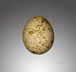 Około połowy maja (również od marca do czerwca) składa 3–7 jaj, które są równobiegunowe, owalne o tępych biegunach, o średnich wymiarach 40 × 32 mm i ubarwieniu białożółtym, szaroróżowym lub ceglastoróżowym z gęstymi plamami koloru rdzawobrązowego.