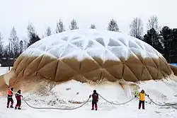 - ↑ Pykrete Dome. [dostęp 2015-05-30]. [zarchiwizowane z tego adresu (2015-05-30)]. (ang.).