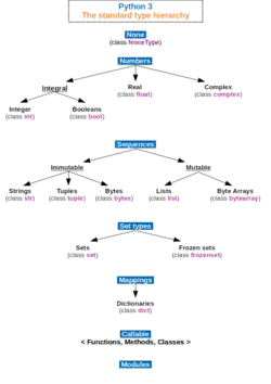 System typów w Pythonie jest silnie powiązany z systemem klas. Chociaż typy wbudowane nie są właściwie klasami, klasa może dziedziczyć z dowolnego typu. Można więc dziedziczyć klasy z napisów czy słowników, a nawet z liczb całkowitych. Ponadto możliwe jest dziedziczenie wielokrotne.