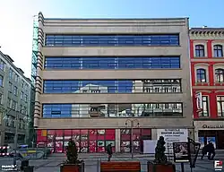 - ↑ W różnych opracowaniach podawana jest inna liczba kondygnacji nadziemnych: sześć[6], siedem[44]). Tu przejęto zgodnie z ewidencją budynków: pięć kondygnacji[47]. Miejscowy plan zagospodarowania przestrzennego dopuszcza pięć kondygnacji dla obowiązującej linii zabudowy wyznaczonej wzdłuż pierzei obu ulic, natomiast dla linii nieprzekraczalnej, cofniętej w głąb posesji, dopuszcza większą liczbę kondygnacji[70].