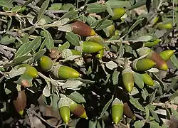 - Orzechy zwane żołędziami o zaokrąglonym lub spiczastym wierzchołku. Są słodkie[5].