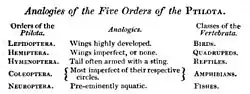 Innym aspektem tego systemu było wyodrębnianie analogii wśród różnych grup (Swainson, 1835)[4]: