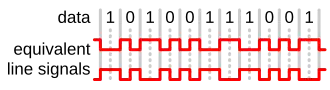 W kodowaniu różnicowym na początku każdego bitu, który odpowiada logicznej jedynce, brak jest zmiany stanu logicznego. Przy logicznym zerze taka zmiana następuje i ma miejsce dokładnie w połowie czasu trwania tego stanu logicznego. Ponieważ istotny jest jedynie fakt występowania zmian stanu logicznego, to po zmianie polaryzacji (np. w wyniku zamiany przewodów) sygnał zostanie także prawidłowo zdemodulowany.