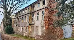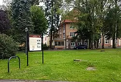 - ↑ Tablica retro, w tle byłe sanatorium Lechia, po prawej niewidoczna Poznanianka i były dom Levych[32].