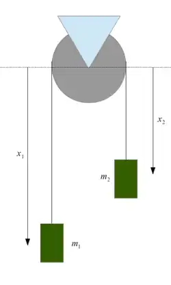 od poziomu osi krążka. Do opisu układu potrzebne są dwie współrzędne stanu (