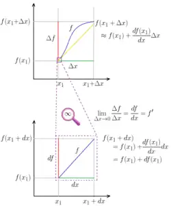 Ponieważ wartość jest nieskończenie mniejsza od wartości więc wszystkie wyrazy z w potęgach wyższych niż jeden możemy porzucić, uznając za nieistotne (argument Leibnitza - związany z iloczynem pochodnych). W ten sposób otrzymaliśmy szukane przybliżenie naprężenia na przeciwległej ściance. Bardziej intuicyjne przedstawienie przybliżenia wartości w punkcie obrazuje rysunek pod sześcianem. Podobne rozumowanie przeprowadzamy dla przybliżeń naprężeń