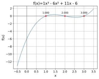 ma 3 pierwiastki rzeczywiste: , oraz ; można ją przedstawić w postaci czynnikowej wyżej podanej. Licząc stwierdzimy, że tu .