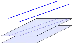 - ↑ Eric W. Weisstein, Parallel Line and Plane, [w:] MathWorld, Wolfram Research (ang.). [dostęp 2025-04-26].