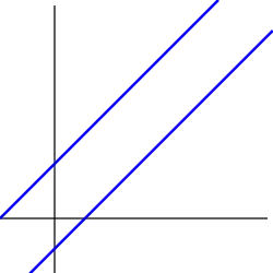 Dwie proste na płaszczyźnie kartezjańskiej są interpretacją graficzną układu dwóch równań liniowych z dwiema niewiadomymi. Proste równoległe rozłączne odpowiadają układowi sprzecznemu, proste pokrywające się układowi nieoznaczonemu. Stąd dwie proste zadane równaniami ogólnymi