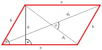 - – kąt pomiędzy przekątnymi równoległoboku.